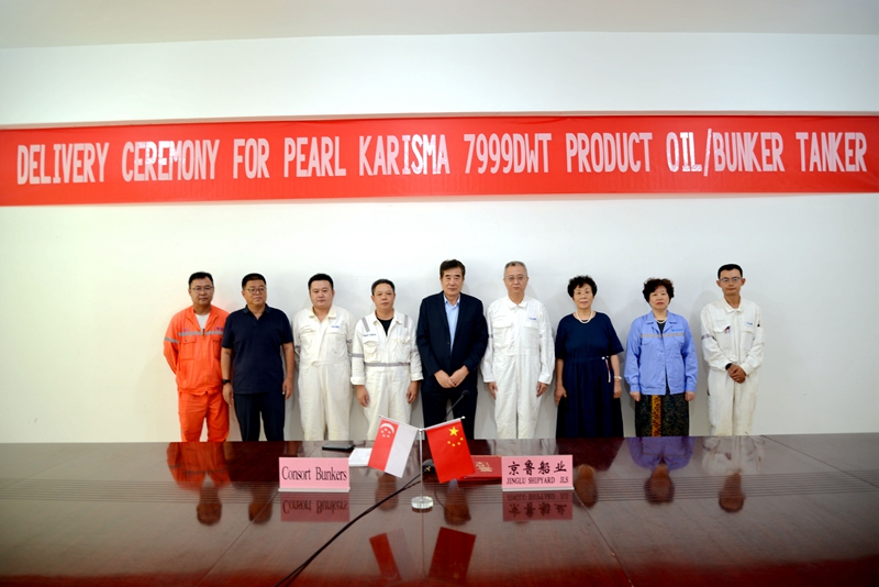 2024年8月20日,京魯船業(yè)為新加坡Consort Bunkers公司建造的7999DWT加油船系列船“PEARL KARISMA”輪順利交付。